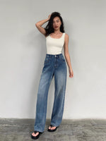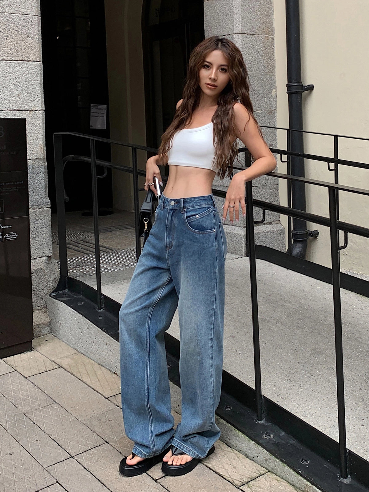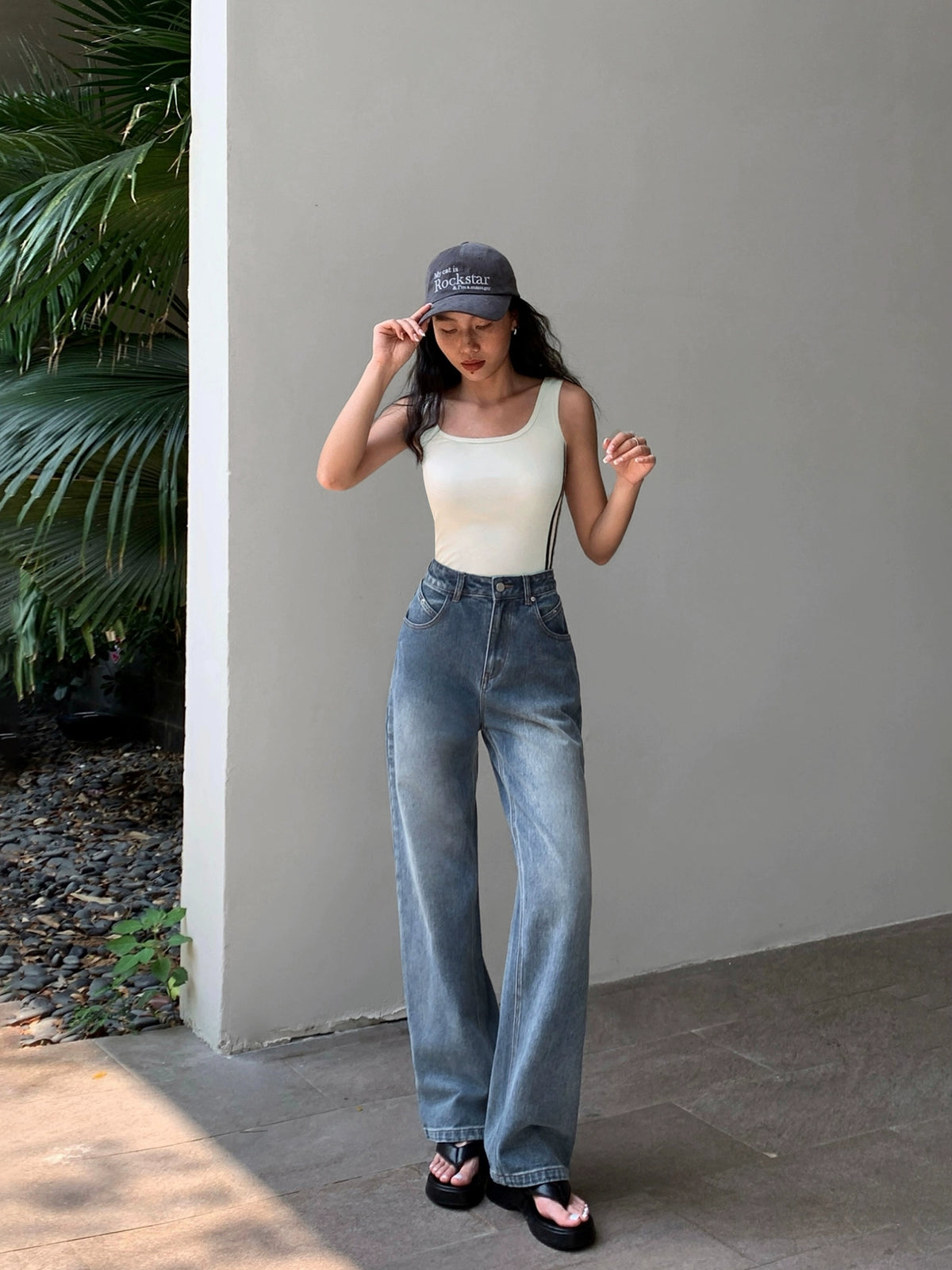 - جينز ساق مستقيم مع خصر مرتفع على شكل H لمظهر جذاب