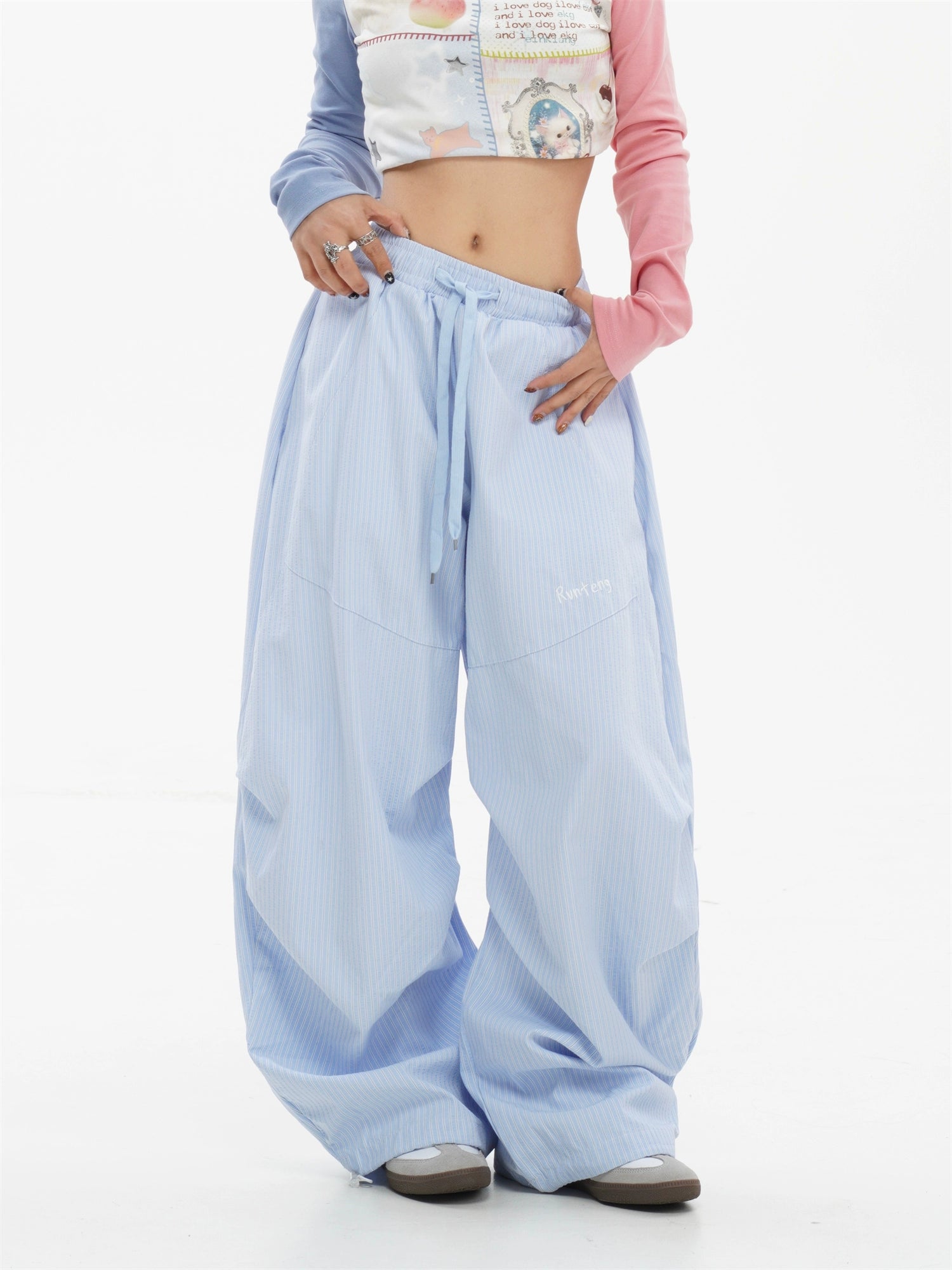 بنطلون فضفاض واسع مخطط