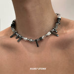 - Black stone, glass, titanium steel, imitation pearl, alloy