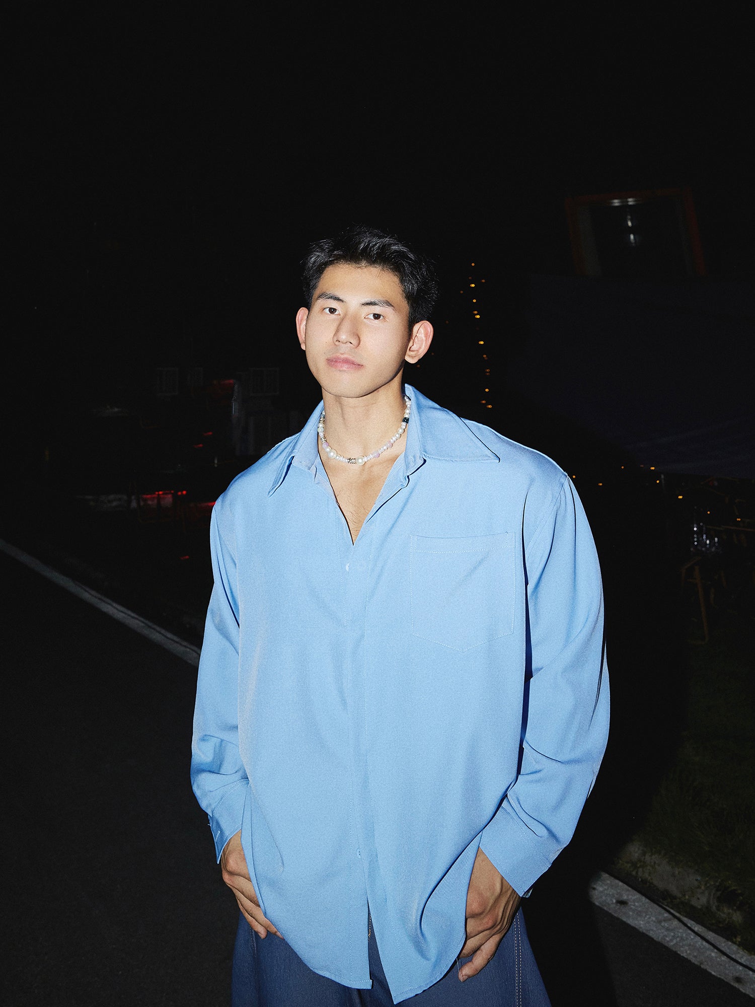Seidenhemd mit großem Kragen und lockerer Passform
