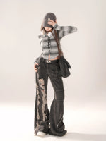 ダメージ加工ワイドレッグカーゴワークパンツ