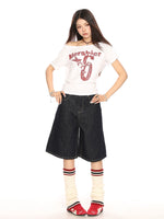ダメージ加工ワイドレッグクロップドデニムパンツ
