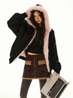 フェイクファーライニング付きフード付き作業用ジャケット