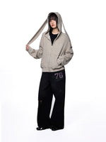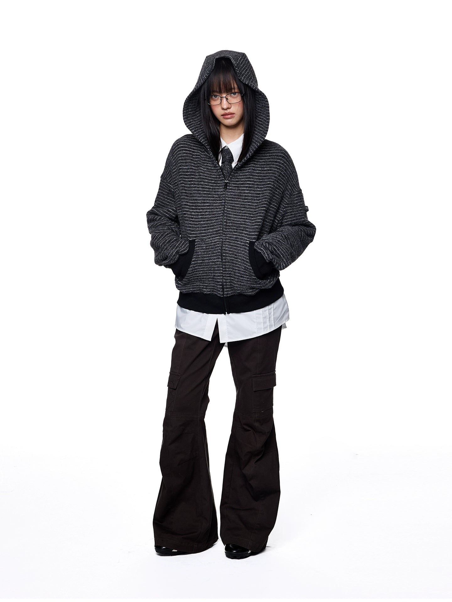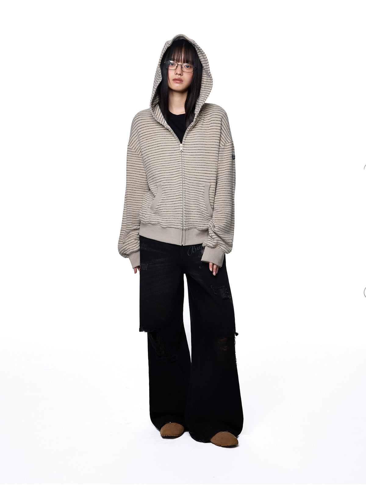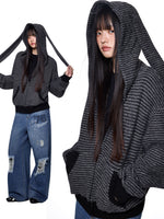ウサギ耳ストライプフード付きジップスウェットシャツ