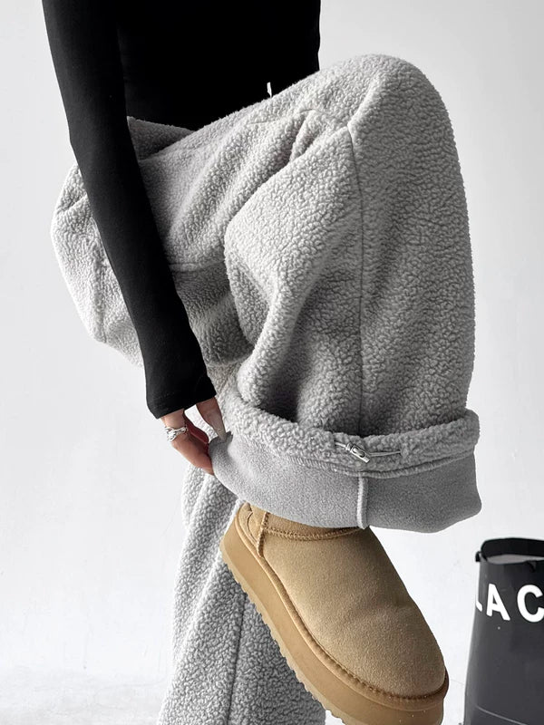 ワイドレッグフリースドローストリングラウンジパンツ