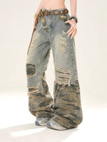 リップドカモフラージュパッチワークワイドレッグパンツ