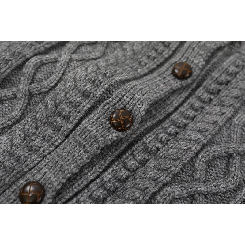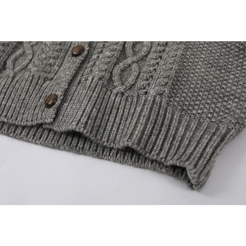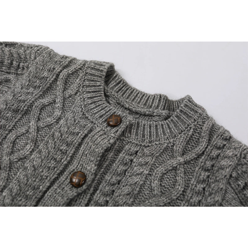 ケーブルニットボタンアップラウンドネックカーディガン