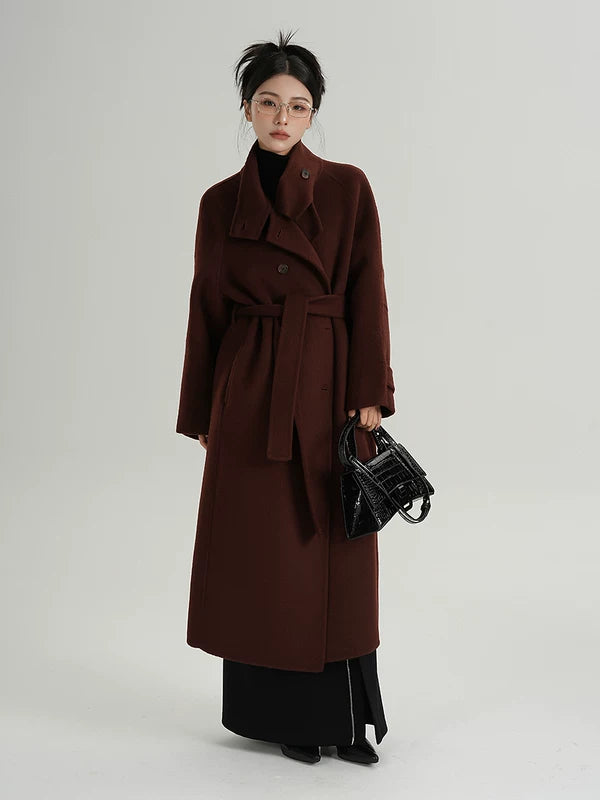 ロングウールスタンドカラー ベルト付きコート