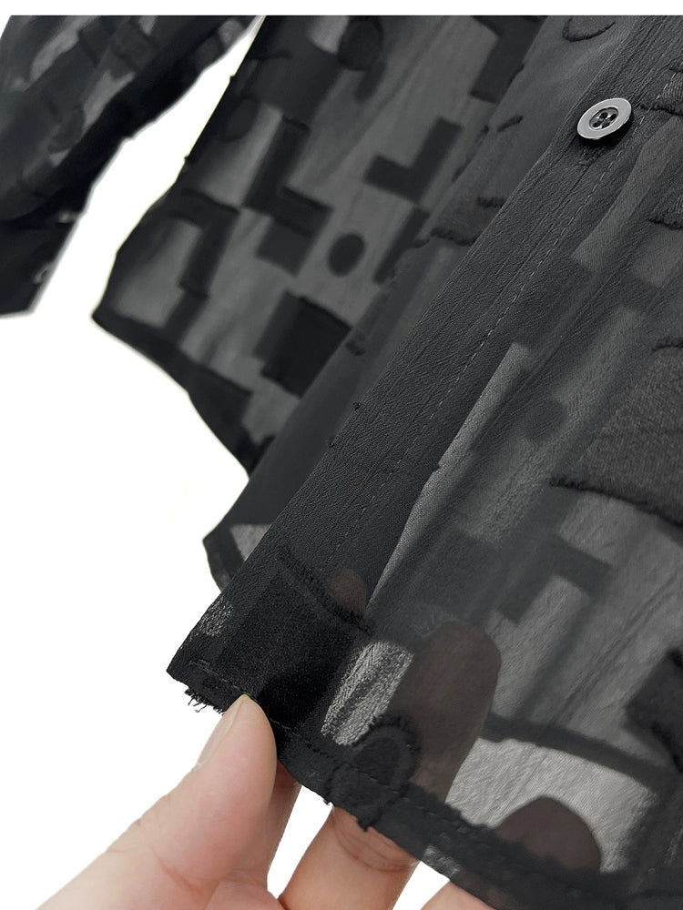 메쉬 패턴 루즈 핏 시어 셔츠