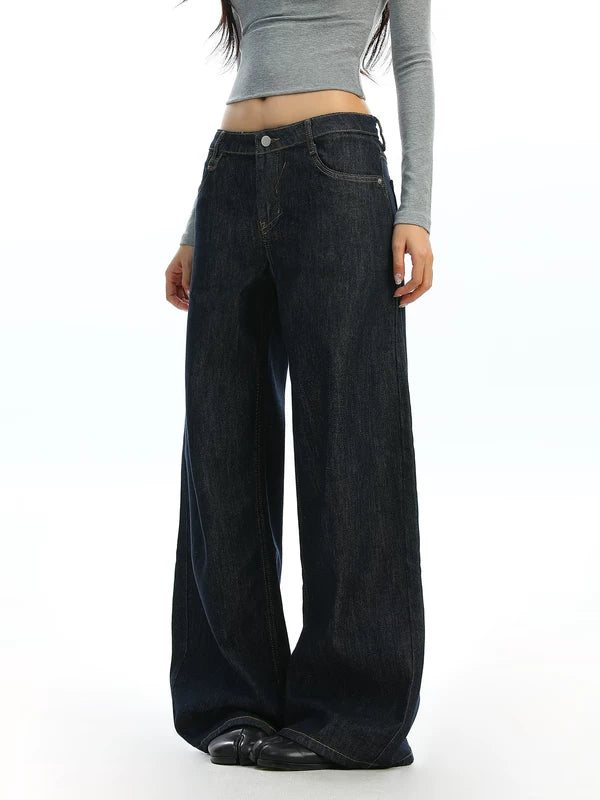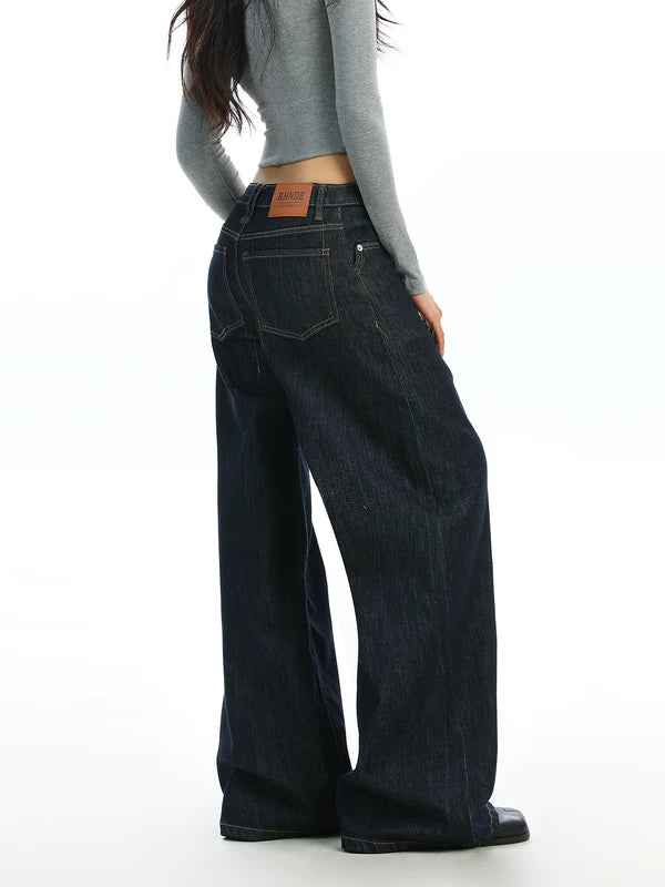 Calças de Denim de Perna Larga de Cintura Alta