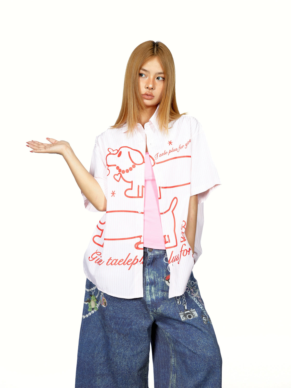 Dikey Çizgili Dachshund Baskılı Gömlek